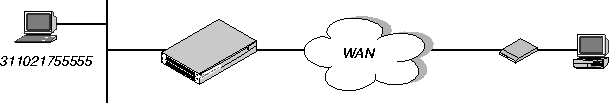 This following example describes how to access the X.25/T3POS from a modem. The X.25 data link is already up because it is a nailed physical connection. This scenario also applies to Telnet users connecting the port 150 of the MAX.